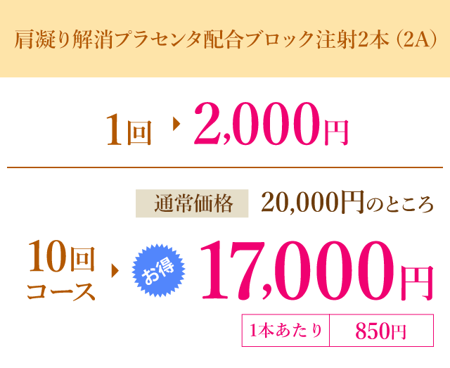 肩凝り解消プラセンタ配合ブロック注射 >